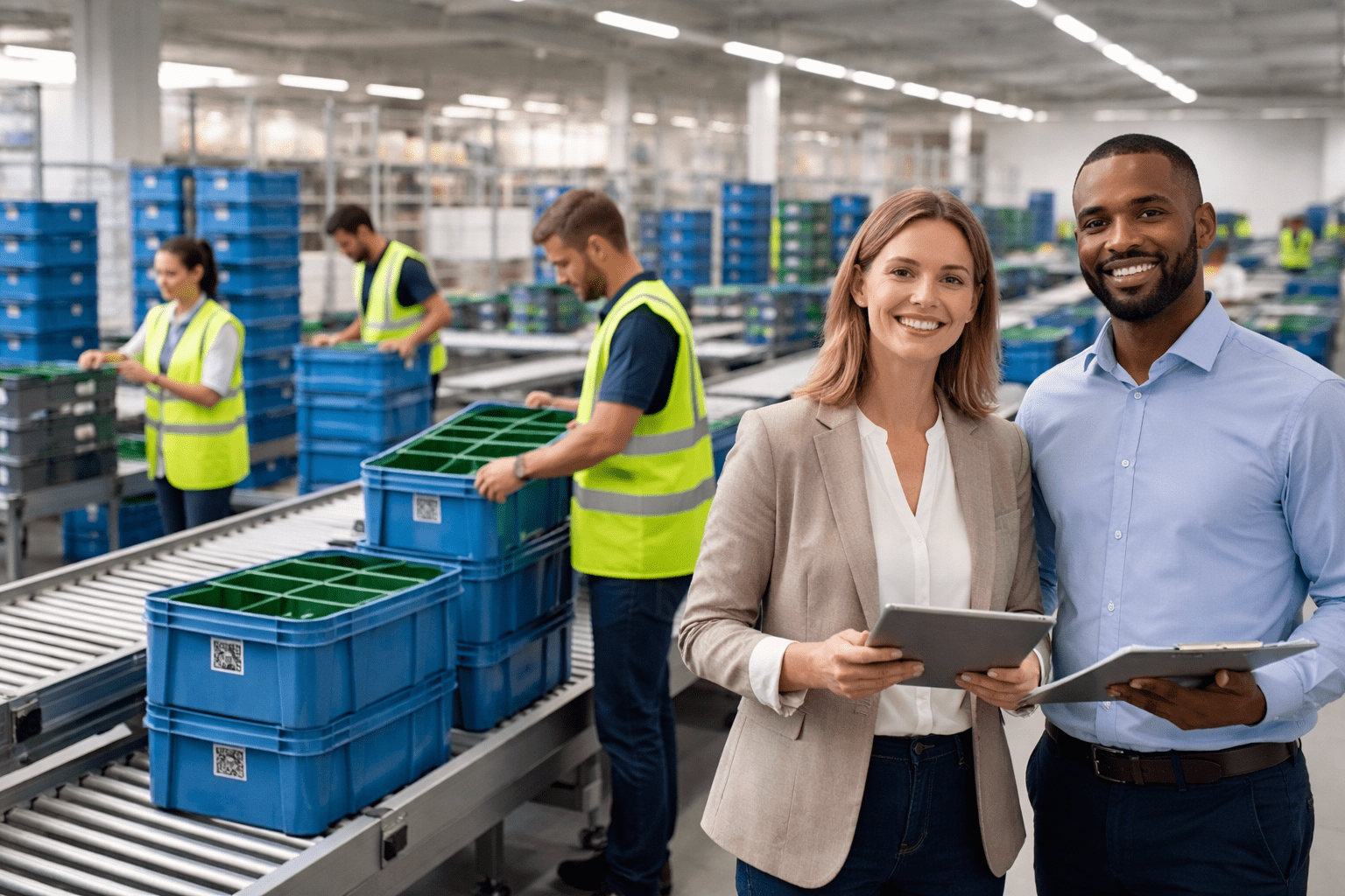 We assess product characteristics, handling conditions, hygiene needs, logistics constraints, and return flows. Based on this, we recommend reusable packaging that fits your day-to-day operations, avoiding friction, rework, and resistance later.